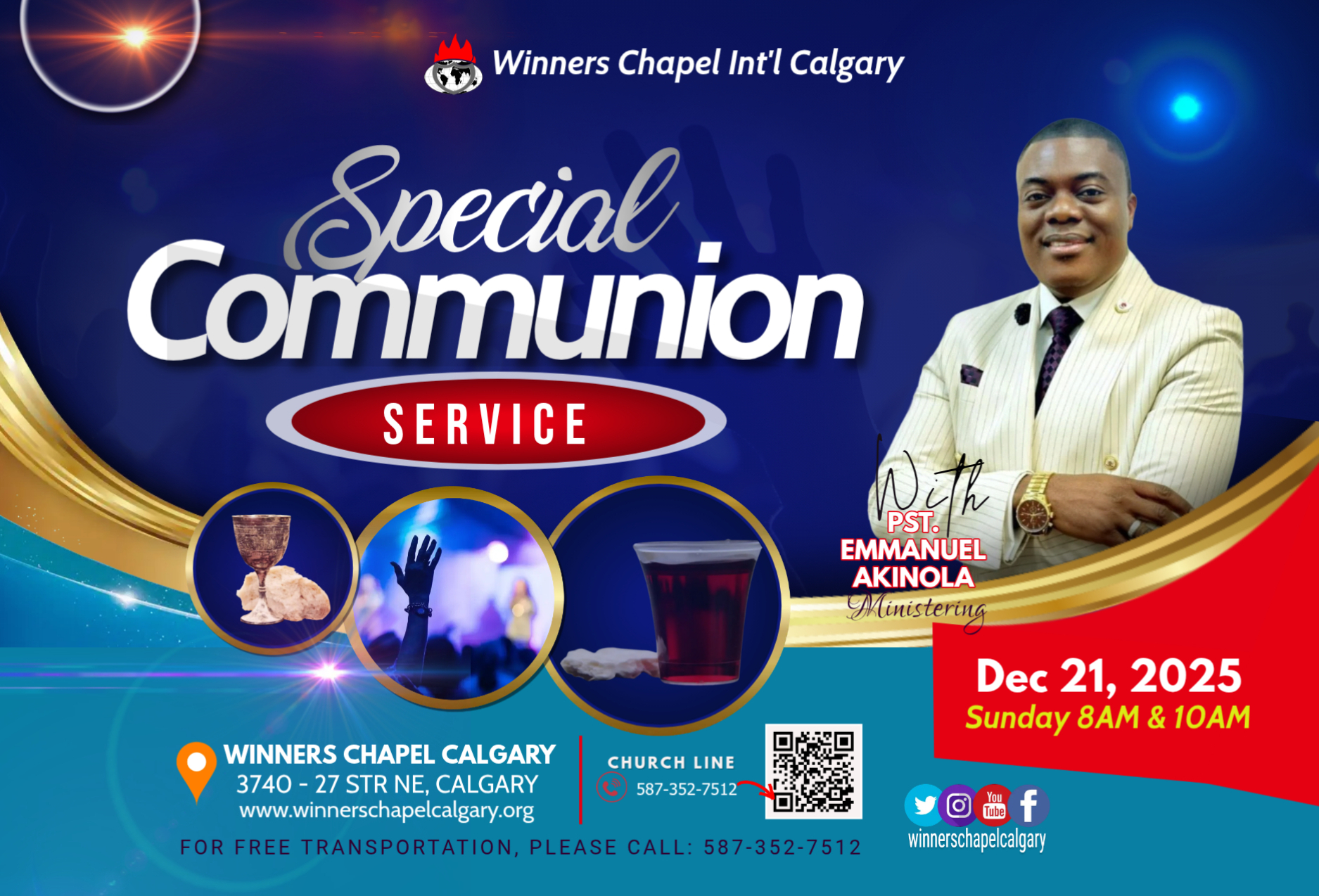Next Sunday, December 21st, 2025, shall be our Special Communion Service. Come expecting an encounter with the prophetic word. It shall be a service to be much remembered. Invite your new converts, family, friends, and loved ones for a life-changing experience. Service Times: 8:00am and 10:00am respectively.