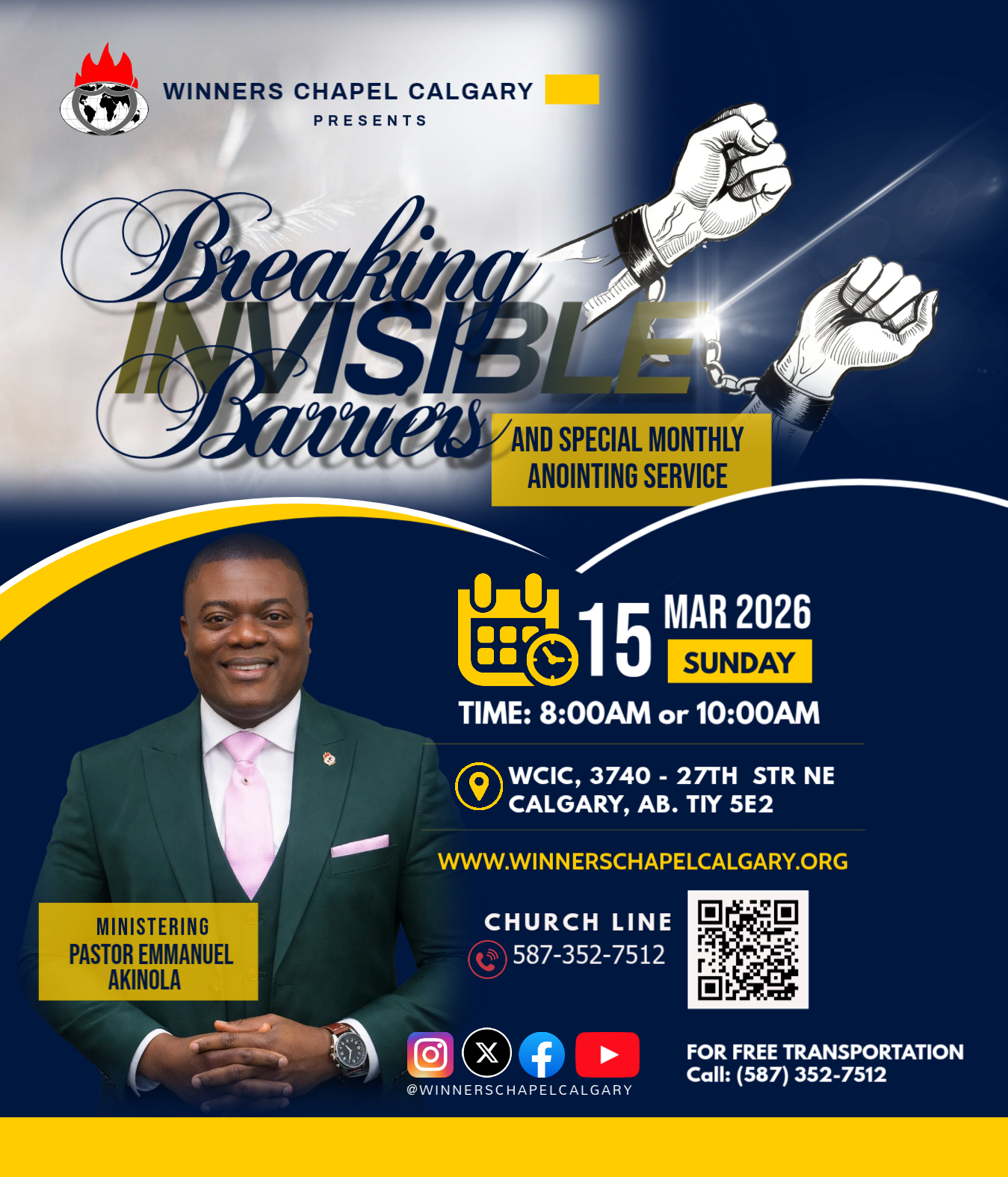 Next Sunday, March 15th, 2026, will be our Breaking Invisible Barriers Service. It shall also double as our Special Monthly Anointing Service. It shall be a service to be much remembered. Invite your new converts, family, friends, and loved ones for a life-changing experience. Service Times: 8:00am and 10:00am respectively.
