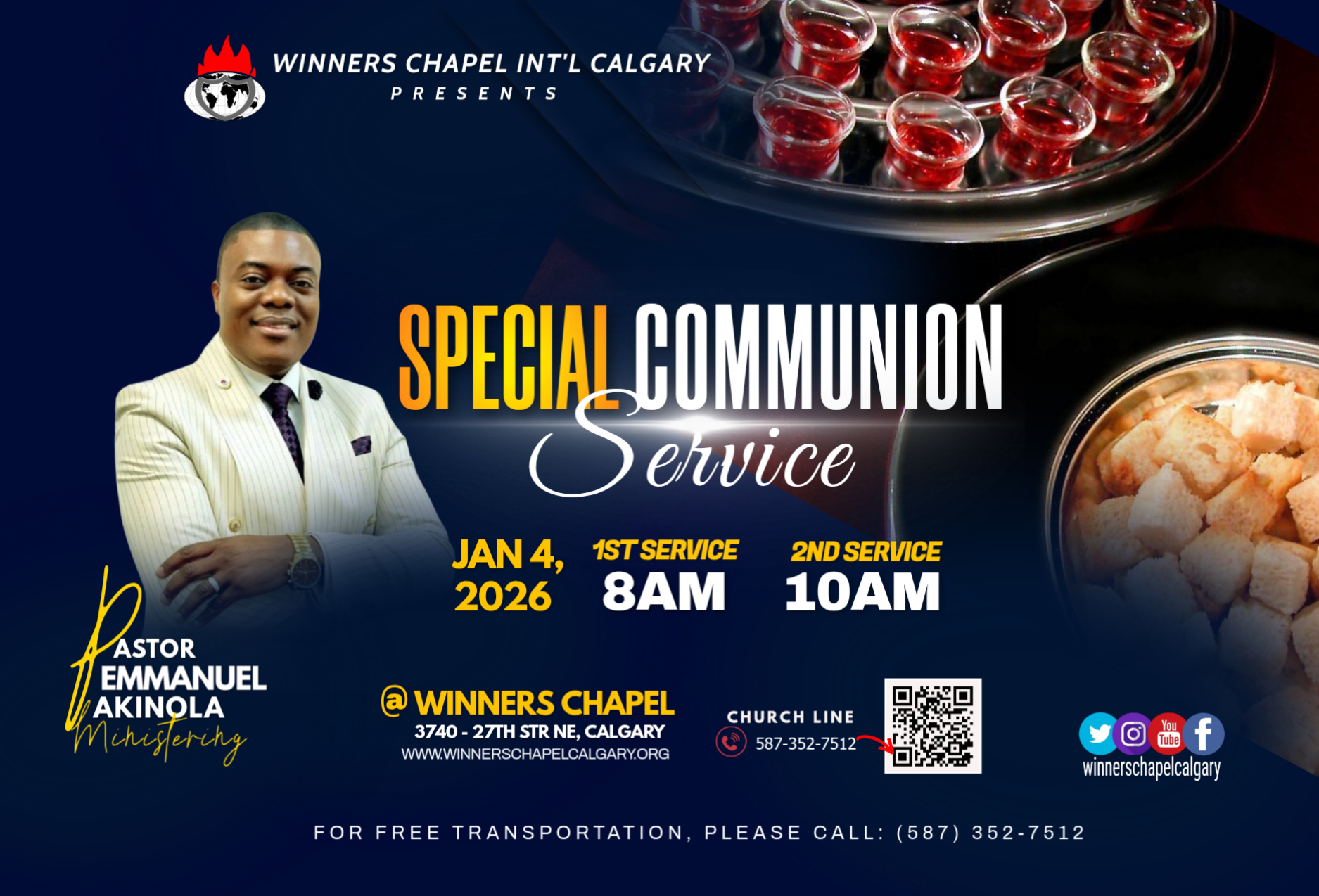 Next Sunday, January 4th, 2026, being the first Sunday of the year, shall be our Special Communion Service, where God will be setting the pace for the year. In this service, amongst other things, we shall be empowered for the spiritual adventure ahead after the order of Elijah. Come expecting an encounter with the Word and the mystery of the communion. It shall be a service to be much remembered. Invite your new converts, family, friends, and loved ones for a life-changing experience. Service Times: 8:00am and 10:00am respectively.